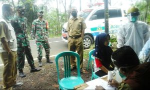Garut, TransNews.co.id-Sedikitnya 11 orang perangkat dan masyarakat Desa Jatiwangi kacamatan Pakejeng Garut mengikuti Swab Tes di halaman pasar Deplot desa Jatiwangi, Senin (5/10/2020).