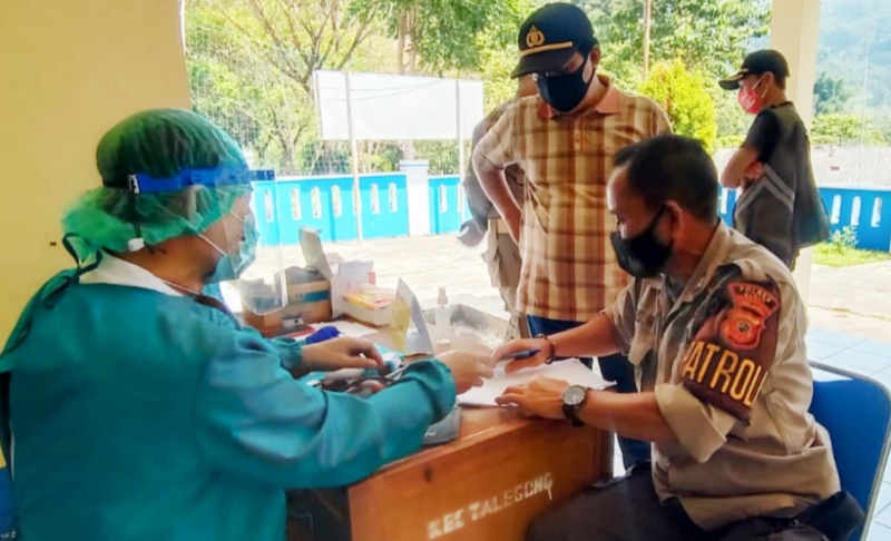 Garut,Transnews.co.id-Sebanyak 19 orang perangkat kecamatan dan anggota Polsek kecamatan Talegong Kabupaten Garut,menjalani vaksinasi Covid-19 di aula kantor Kecamatan Talegong Rabu (3/2/2021).
