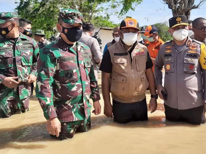 Saat menijau lokasi banjir Bupati Bekasi Eka Supriatmaja didampingi unsur Forkopimda Kabupaten Bekasi, Kapolda Metro Jaya, Pangdam Jaya, Kepala Dinas Sosial Kabupaten Bekasi, serta Camat Pebayuran.