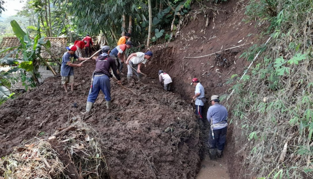 Garut, TransNews.co.id-Masyarakat Desa Cilawu Kecamatan Cilawu Garut Jawa Barat melakukan kegiatan gotong royong pembersihan lingkungan melalui program padat Karya Desa,Sabtu (23/1/2020).