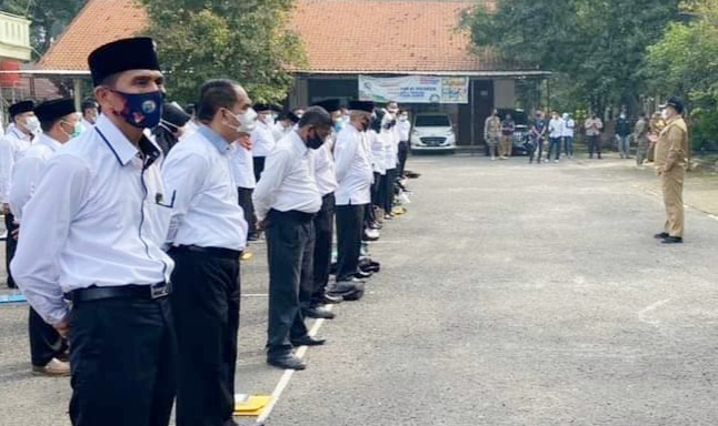Karawang,transnews.co.id-Pelaksana Harian Bupati Karawang Drs. H. Acep Jamhuri M.Si.memberikan motivasi kepada para peserta ujian tertulis Balonkades di SMPN 1 Karawang Barat,Selasa (22/2/2021).