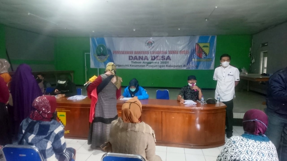 Kepala desa Margamukti H. Odang Kusnadi disela penyaluran BST menjelaskan Bantuan Sodial Tunai ini merupakan program dari pemerintah pusat Kemensos untuk KPM yang berhak menerima dimasa PPKM darurat.