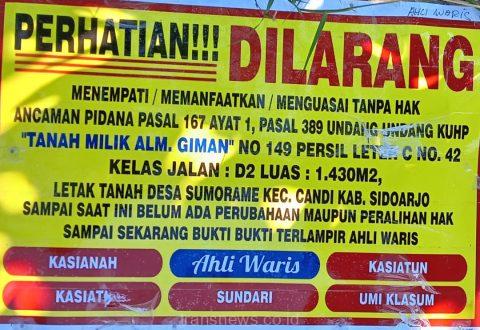 “Sekarang tanah sawah ahli waris Giman ada papan bertuliskan himbauan kepada pihak lain agar tidak merusak tulisan dan tanaman yang ada. Jika merusak akan kami pidanakan sesuai aturan perundang undangan yang berlaku.” tegasnya