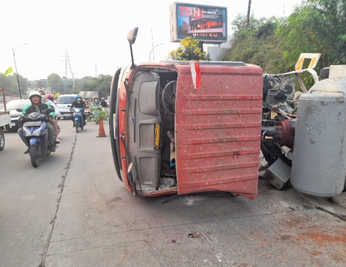 “Awalnya saya tau info ini dari Pemuda karang taruna setempat truk ini lagi nunggu temennya, terus mundur kebablasan dan selip ban sehingga truk tersebut terbalik,” terangnya.