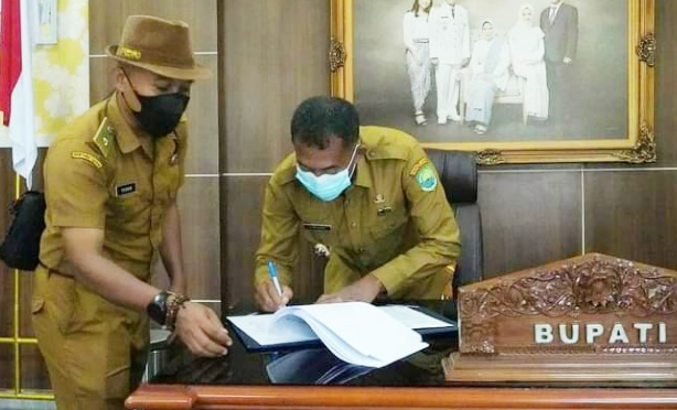 MoU terkait penyaluran Bantuan Keuangan Pemulihan Ekonomi Nasional kepada pemerintah daerah Kabupaten/Kota di Jawa Barat tahun anggaran 2021, MoU dilakukan di masing masing daerah Selasa (30/3/2021).