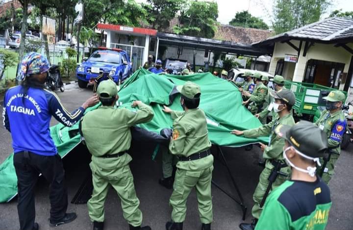 Kota Sukabumi,transnews.co.id-Puluhan Anggota Linmas di Kelurahan Warudoyong Kecamatan Warudoyong kota Sukabumi, Selasa (6/10/2020) dihalaman Kantor Kelurahan Warudoyong mengikuti Pelatihan kesiap siagaan dalam menghadapi bencana alam.