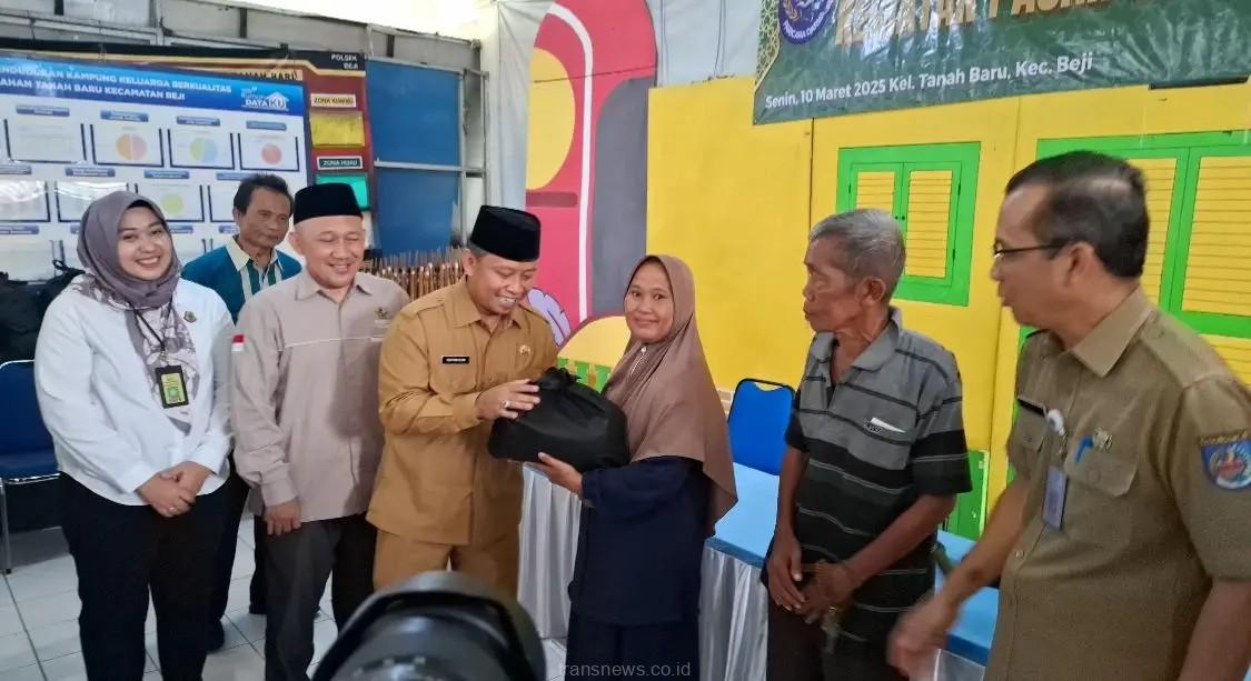 “Alhamdulillah, sembako murah ini sangat membantu penuhi kebutuhan pangan sehari-hari,” ujar Utjup warga RT 005 RW 003 Kelurahan Tanah Baru usai tebus sembako Pasar Murah Ramadan di halaman kantor Kelurahan Tanah Baru, Senin (10/03/2025).