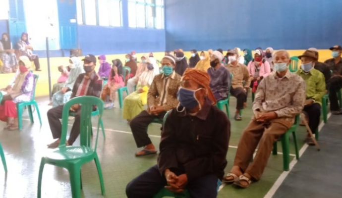 Penyaluran BLT DD langsung diberikan oleh Kades Mekarmukti di aula gedung Desa Mekarmukti Kecamatan Mekarmukti Garut,Selasa (20/4/2021).
