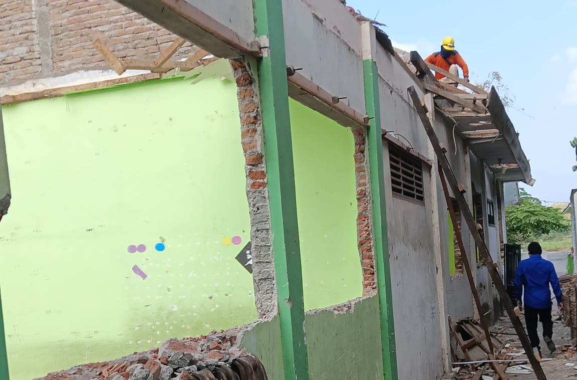 Pantauan dan investigasi di lapangan Kamis (7/9/2021) pada pelaksanaan kegiatan rehabilitasi dan renovasi sarana dan prasarana sekolah Madrasah yang ada di wilayah Kota Kediri tersebut, tampak sedang berlangsung kegiatan pembongkaran gedung sekolah yang mau direhab.