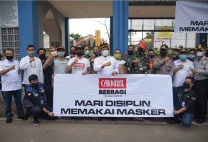 Kegiatan bagi bagi masker tersebut berkolaborasi dengan PT Kardinal,karena