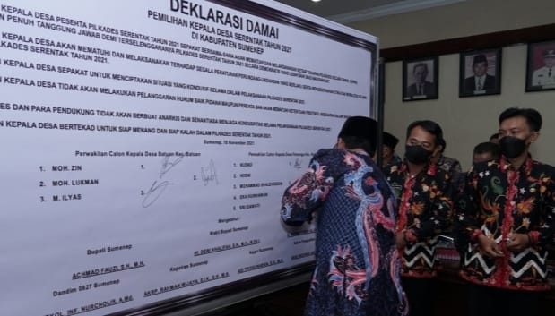 Demikian dikatakan, Bupati Sumenep, Achmad Fauzi, SH, MH pada Deklarasi Damai Pilkades Serentak di Kantor Bupati, Kamis (18/11).