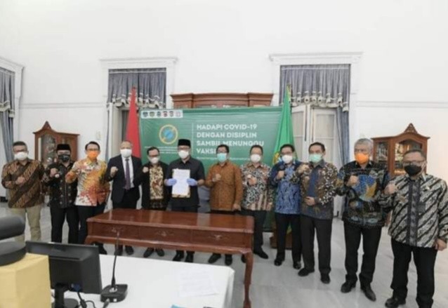 Gubernur Jabar Ridwan Kamil menandatangani Deklarasi bersama Ketua Komisi Pemilihan Umum (KPU) Provinsi Jabar, Ketua Badan Pengawas Pemilu (Bawaslu) Jabar, Pejabat Sementara (Pjs) Bupati/Wali Kota dan Sekretaris Daerah (Sekda) Bandung.