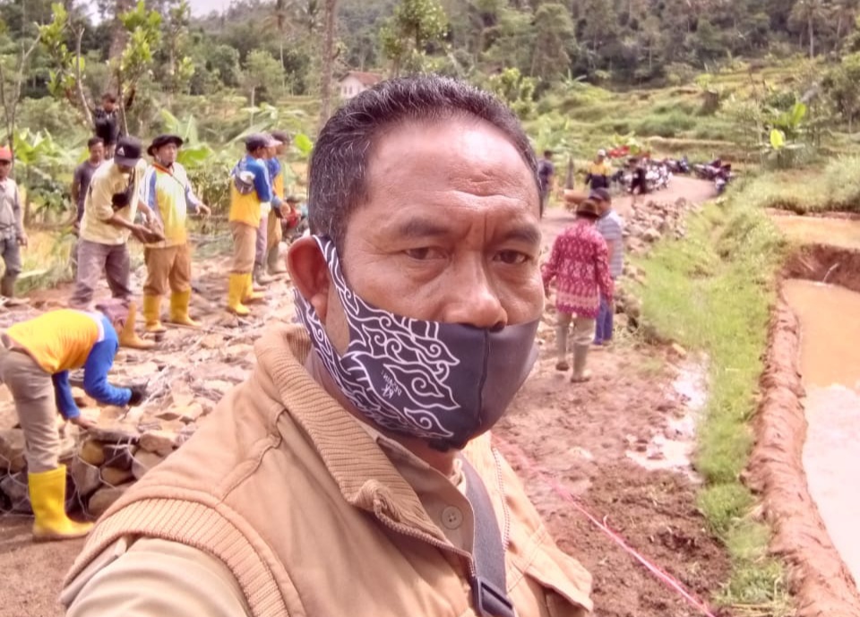 Gotroy perbaikan jalan disaksikan oleh Kepala Desa Selaawi Karna dan juga petugas Dinas PUPR Talegong.