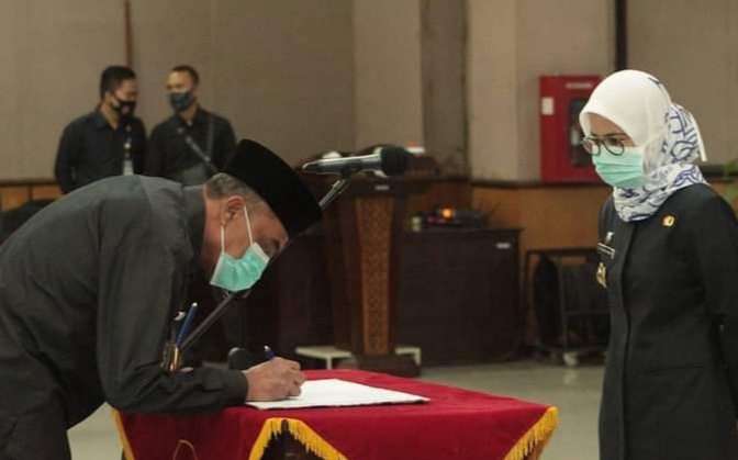 Prosesi pengambilan sumpah para pejabat tersebut dilakukan secara virtual online di Aula Multatuli Setda Lebak,Senin (4/1/2021).