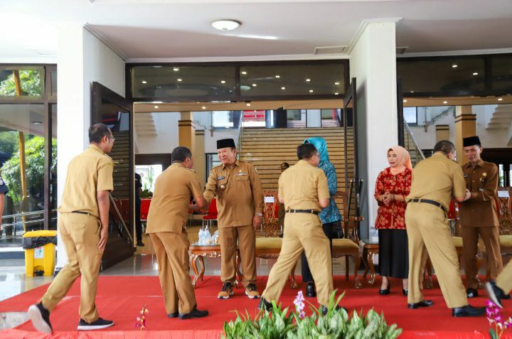 Tak hanya itu, jajaran pimpinan OPD, camat, lurah, dan seluruh staf di lingkungan Pemkab Jember juga turut hadir. Memimpin apel sebelum halal bi halal, Bupati Hendy menyampaikan sejumlah pesan.