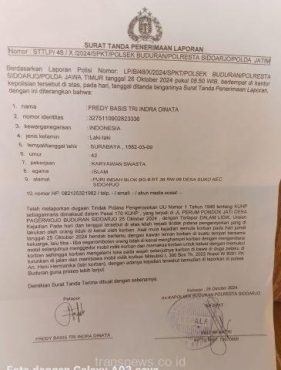 Atas kejadian yang menimpa dirinya tersebut, korban langsung melaporkan peristiwa perampasan dengan kekerasan tersebut ke Polsek Buduran, Polresta Sidoarjo dengan nomor laporan polisi nomor: LP /B/48/X/2024/SPKT/POLSEK BUDURAN/POLRESTA SIDOARJO/POLDA JAWA TIMUR tangal 26 Oktober 2024 pukul 08.50 WIB, bertempat di kantor Kepolisian tersebut diatas.