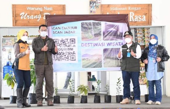 Sementara itu Plt. Bupati Cianjur H. Herman Suherman menyampaikan bahwa pemasangan SCAN QR CODE yang pertama kali di Cianjur yang bertujuan untuk memudahkan akses berkaitan dengan promosi wisata dan peningkatan pemulihan ekonomi.