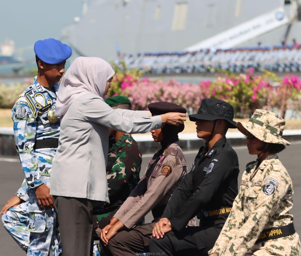 SURABAYA, transnews.co.id – Gubernur Jawa Timur, Khofifah Indar Parawansa memimpin Pembaretan Bersama SMAN Taruna se-Jawa Timur Tahun 2025 yang digelar di Dermaga Madura Komando Armada (Koarmada) II TNI Angkatan Laut, Surabaya, Kamis (16/10/2025).