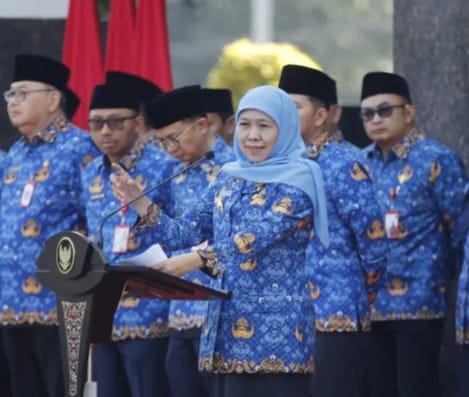 Arahan tersebut disampaikan saat apel pagi di Halaman Kantor Setdaprov Jatim, Surabaya, Selasa (17/3/2026). Khofifah menegaskan pentingnya kesiapan lintas sektor menghadapi dinamika Idulfitri 1447 Hijriah, mulai dari pelayanan publik, transportasi hingga mitigasi bencana hidrometeorologi.