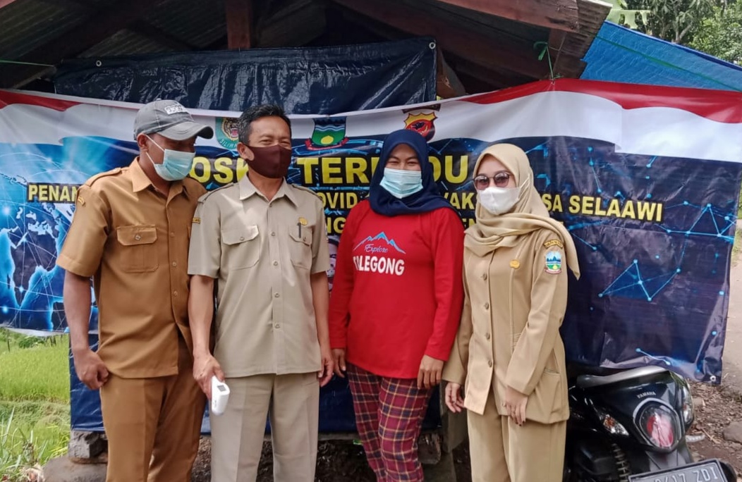 Garut,transnews.co.id-Tim Gugus tugas Desa Selaawi Talegong Garut Jawa Barat melakukan kegiatan Cek suhu tubuh dan pembagian Masker, di Posko Covid 19 Kp Urug Desa Selaawi,Senin (8/2/2021).