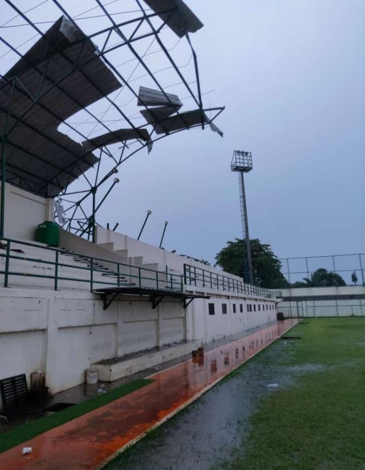 “Sama-sama kita ketahui bahwa hujan yang cukup besar disertai angin kencang yang terjadi sekitar jam 5 sore mengakibatkan kerusakan stadion merpati, dan bagian kerusakan yang paling besar adalah tribun barat sayap sebelah kiri atapnya terangkat,” ucapnya