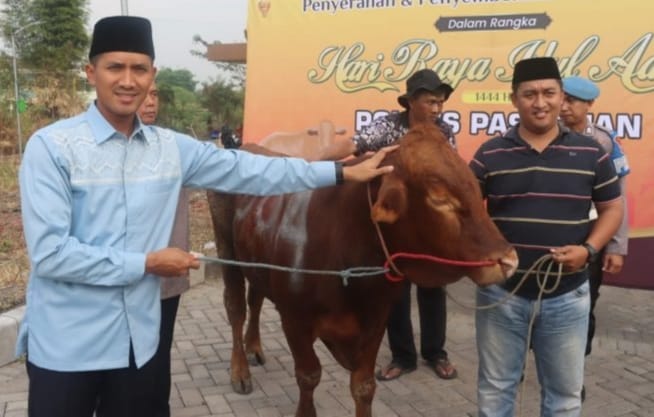 Usai melaksanakan Sholat Idul Adha, Kapolres Pasuruan memimpin langsung kegiatan penyerahan dan penyembelihan hewan Qurban dari Polres Pasuruan, bertempat di halaman Rusun Polres Pasuruan tepat dibelakang Mapolsek Bangil.