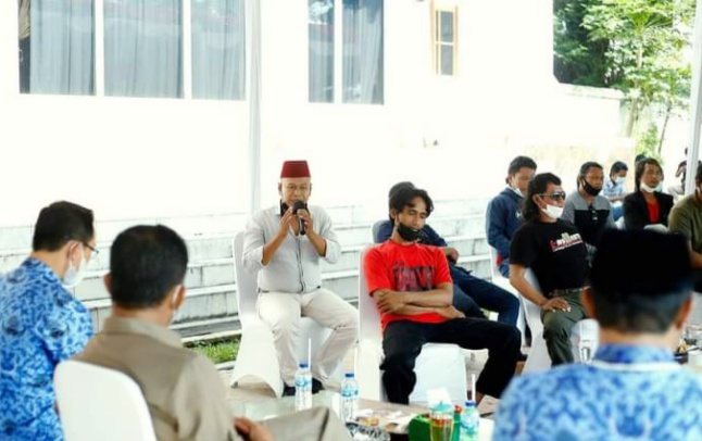Suasana Audiensi para Seniman dengan Bupati Subang. Mereka mengeluhkan kondisi para seniman dimasa pandemi yang sangat terpuruk kondisinya. (Ist)