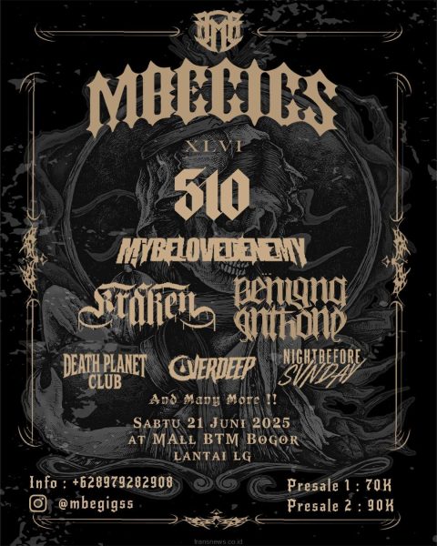 BOGOR, transnews.co.id – Mbe Gigs kembali menggelar acara musik cadas di Bogor pada tanggal 21 Juni 2025 mendatang.