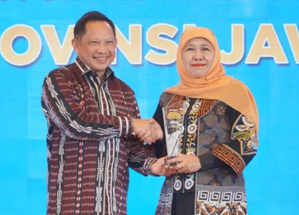 Penghargaan tersebut diserahkan langsung oleh Menteri Dalam Negeri Tito Karnavian kepada Gubernur Jawa Timur Khofifah Indar Parawansa.
