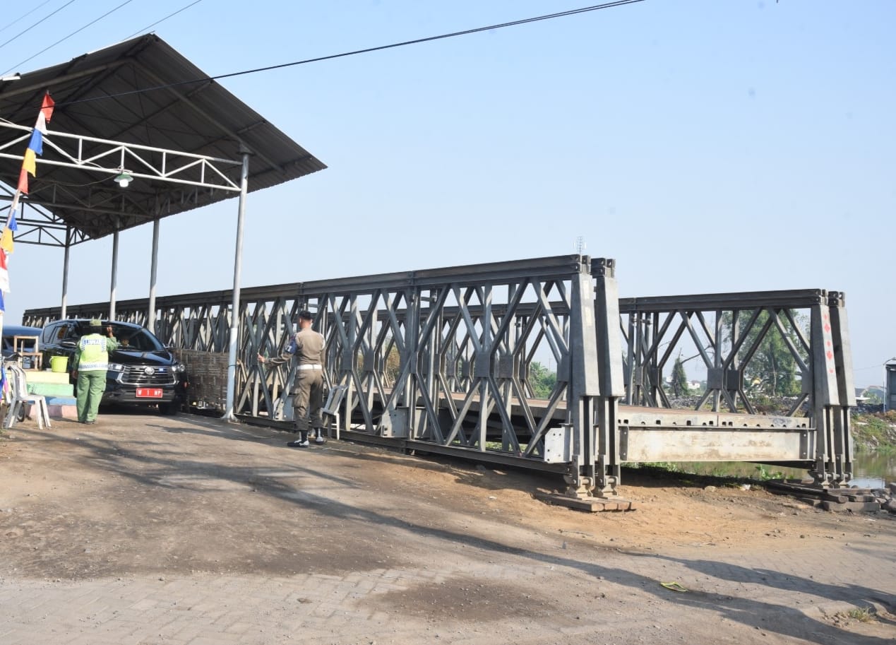 SIDOARJO, transnews.co.id – Jembatan Bailey Kedung Peluk selesai dirakit. Namun masih belum dapat dilewati. Tinggal proses pengerjaan oprit jembatan disisi Timur jembatan.