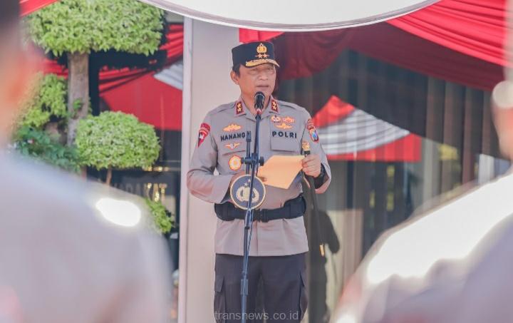 Kapolda jawa timur lrjen Pol Drs Nanang Avianto M.Si.saat pimpin upacara Sertijab