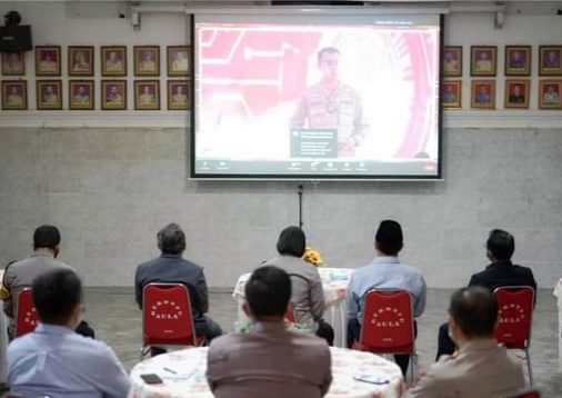 Kegiatan Vicon terkait SIM Nasional di Polres Kota Sukabumi dihadiri Kapolres Sukabumi Kota AKBP Sumarni,Walikota Sukabumi Ahmad Fahmi dan Ketua DPRD Kota Sukabumi Kamal Suherman.(Nas/Ris)