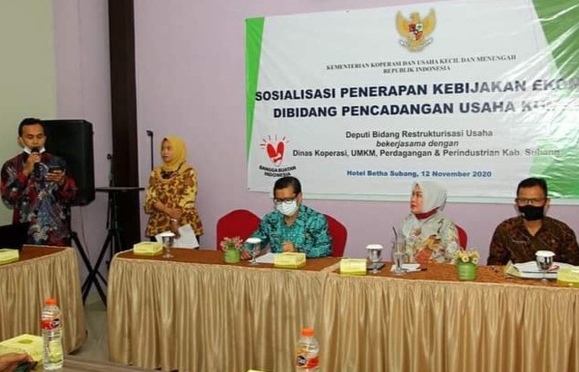 Kab Subang,transnews.co.id- Asisten Deputi Pengembangan Investasi Usaha, Kementrian Koperasi Eviyanti Nasution, SH.MM saat menghadiri kegiatan Sosialisasi penerapan kebijakan ekonomi dibidang pengadaan usaha KUMKM di hotel Dafam Betha Subang, Kamis (12/11/20) menyampaikan bahwa Kab Subang patut berbangga karena sektor pertanian merupakan salah satu sektor yang tidak terkena dampak pandemic covid-19.