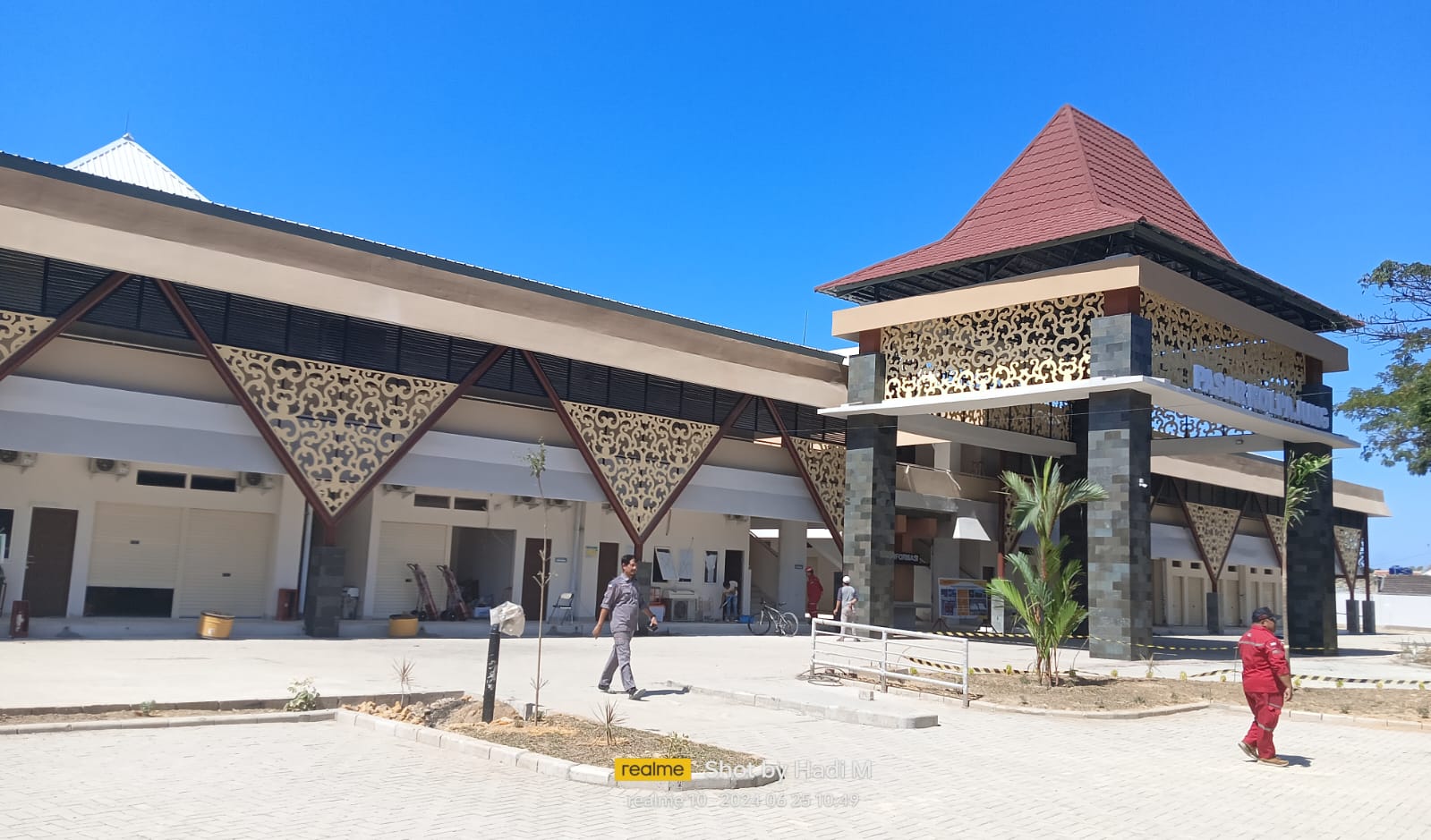 Pantauan di lapangan pada pembangunan Pasar Kolpajung, Pamekasan, Selasa (25/6/2024), siang, tampak bangunan pasar dua lantai sudah selesai dikerjakan, namun masih ada beberapa karyawan sedang melakukan pekerjaan perapian dan pembersihan sisa – sisa material.