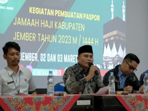 JEMBER, transnews.co.id – Kantor Imigrasi Kelas I TPI Jember Kanwil Kemenkumham Jatim bekerja sama dengan Kantor Kementerian Agama Kabupaten Jember menyelenggarakan kegiatan pembuatan paspor jamaah haji tahun 2023 pada Kamis (2/3/2023).