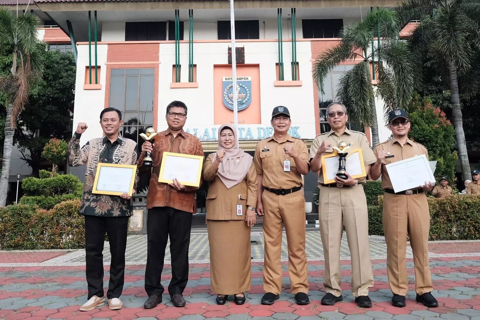 Penghargaan diserahkan saat apel pagi Aparatur Sipil Negara (ASN) Pemerintah Kota (Pemkot) Depok, di Halaman Balai Kota Depok, Senin (07/10/2024).