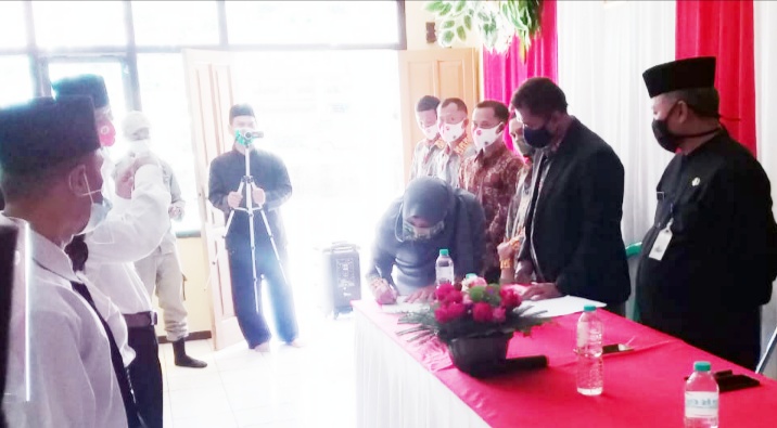 Garut,transnews.co.id-Panitia Pilkades Desa Cikarang Kecamatan Cisewu Garut, dilantik. Kegiatan pelantikan berlangsung di Gor Desa Cikarang,Kamis (25/3/2021).