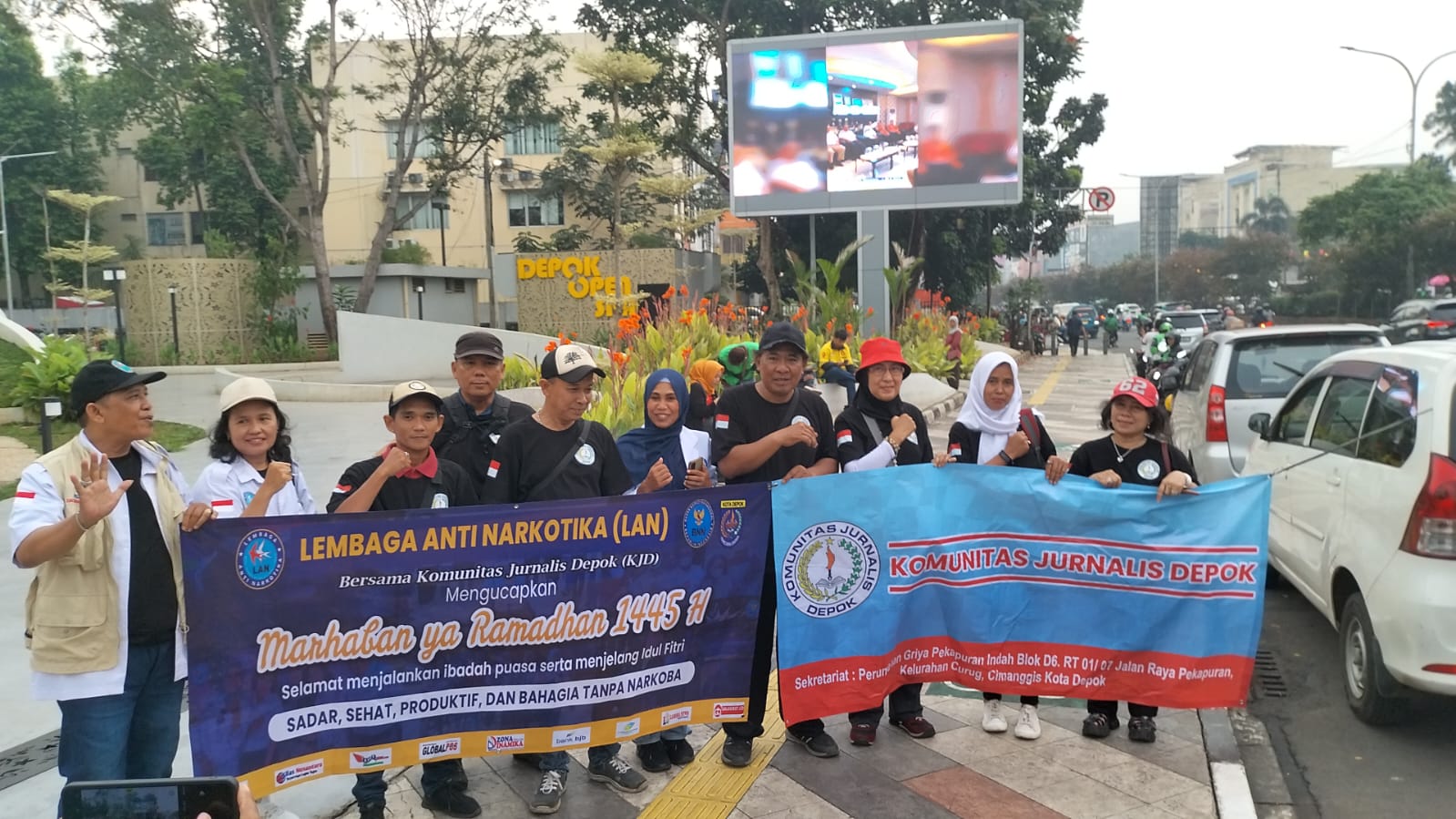 DEPOK, transnews.co.id – Komunitas Jurnalis Depok (KJD) Depok bersama dengan Lembaga Anti Narkoba (LAN) DPC Kota Depok, Rabu (27/03/2024) berbagi takjil di depan Depok Open Space Jalan Margonda Raya Depok