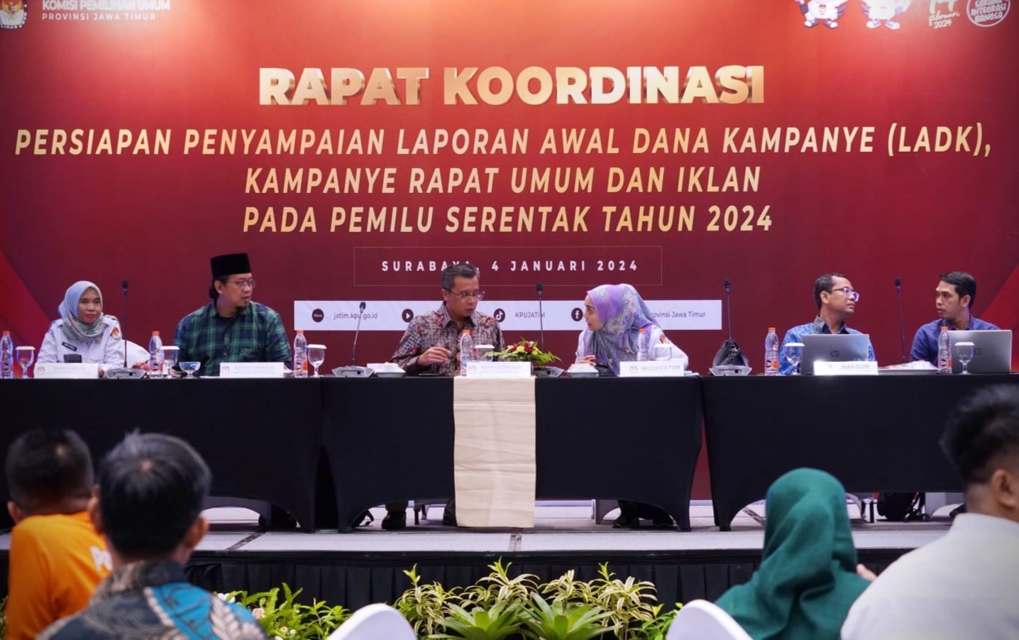 Seperti diketahui, KPU menggelar sosialisasi ini di Grand Swiss-Belhotel Darmo, Jalan Bintoro. Turut hadir dari jajaran KPU Jatim yakni, Divisi Sosdiklih dan Parmas, Gogot Cahyo Baskoro; Divisi Teknis Penyelenggaraan, Insan Qoriawan; Sekretaris, Nanik Karsini; Kabag Teknis Penyelenggaraan Pemilu, Partisipasi dan Hubungan Masyarakat, Yulyani Dewi; Kasubbag Teknis Penyelenggaraan Pemilu, Eddy Prayitno, serta Kasubbag Parmas, Prahasthiwi.