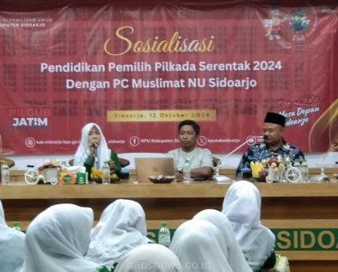 Kegiatan sosialisasi sekaligus pendidikan politik yang digelar KPU Sidoarjo tersebut bekerjasama dengan Pengurus Cabang (PC) Muslimat NU Kabupaten Sidoarjo ini diikuti sekitar 100 peserta dari jajaran pengurus Pengurus Anak Cabang (PAC) Muslimat NU se-Sidoarjo di Desa Larangan, Sidoarjo. Sabtu (12/10/2024) siang.