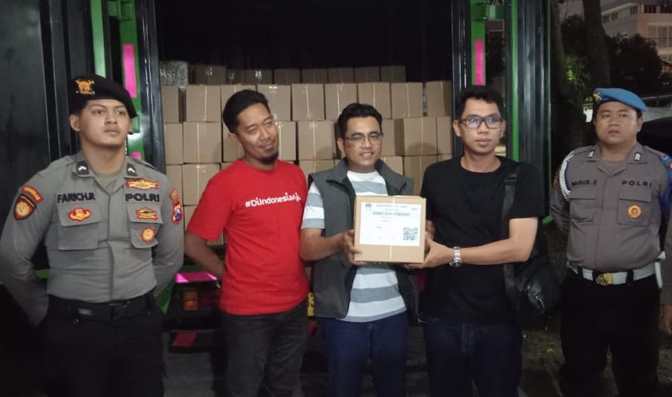 Disaksikan oleh Jajaran petugas pengamanan dari Polres Sidoarjo, Bawaslu, Sekretariat dan Ketua serta Divisi Logistik dan gudang KPU, proses bongkar muat surat suara yang dikemas menjadi 760 koli/Box berlangsung lancar dan aman.