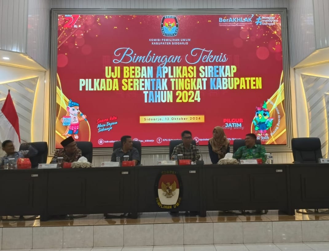 Dari Uji Beban Aplikasi yang dilakukan di aula Kantor KPU Sidoarjo bersama seluruh penyelenggara Pilkada se Indonesia, Minggu (13/10/2024)