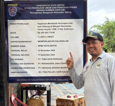 “Terimakasih Pak Walikota Depok dan Wakil Wali Kota Depok, yang telah merealisasikan pekerjaan turap di Perumahan Taman Anyelir 3 dan betonisasi jalan lingkungan perumahan Taman Anyelir 2, RT 03/02 Kelurahan Kalimulya,” ucapnya.