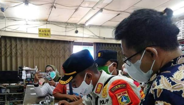 Jakarta, transnews.co.id- Satgas Covid-19 Kecamatan Kebayoran Lama Jakarta Selatan menutup dua toko di Pasar Kebayoran Lama, karena bukan termasuk kategori esensial yang menjual kebutuhan pokok,Jumat (9/7/2021).