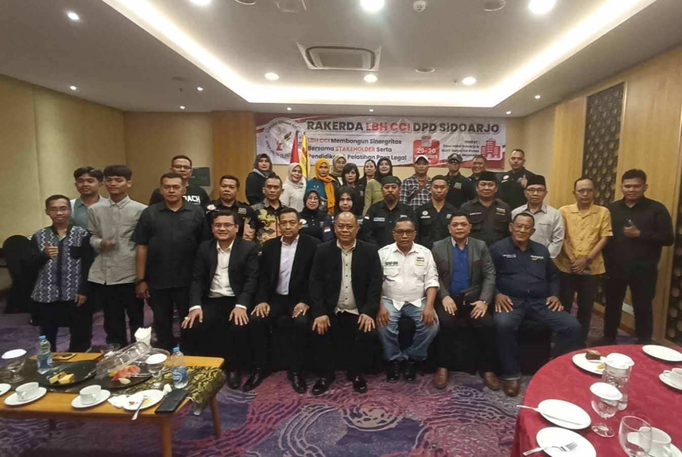 SIDOARJO, transnews.co.id – Dewan Pimpinan Daerah LBH CCI (Cendrawasih Celebes Indonesia) Sidoarjo menggelar Rapat Kerja Daerah (Rakerda) perdana dengan tema “LBH CCI Membangun Sinergitas Bersama Stakeholder serta Pendidikan dan Pelatihan Paralegal”. Kegiatan berlangsung di Five Hotel, Jalan Jenggolo Sidoarjo, Sabtu (29/11/2025).