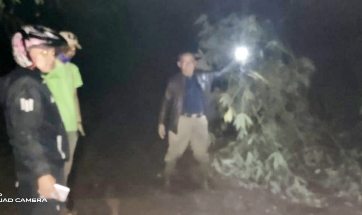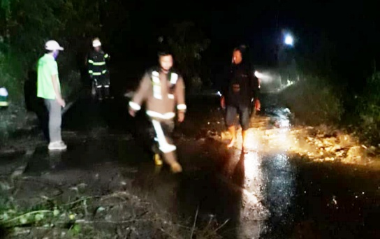 Sejumlah petugas mulai Sat Pol PP Forkopimcam,relawan desa ditambah 1 unit Mobil Damkar dari UPT Bungbulang dan dibantu masyarakat lainya bahu membahu membersihkan longsoran dan pohon yang tumbang. Hingga pukul 00.15 WIB dinihari, masih dilakukan pembersihan.(Na) Editor:Nas