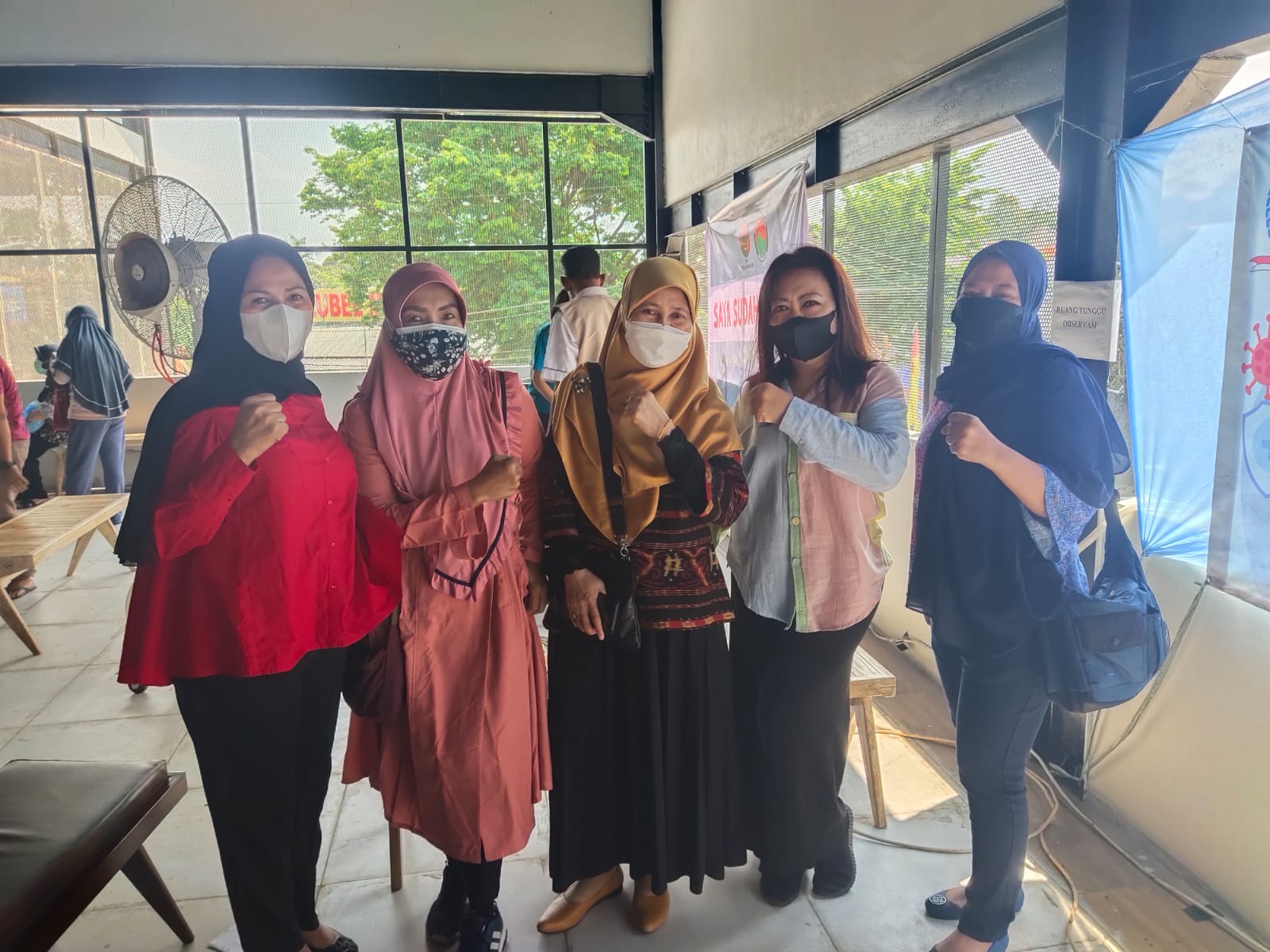 Hajah Afifah Alia bersama Kepala Dinas Kesehatan, dr. Novarita dan pengurus RW 20 kelurahan Panmas.