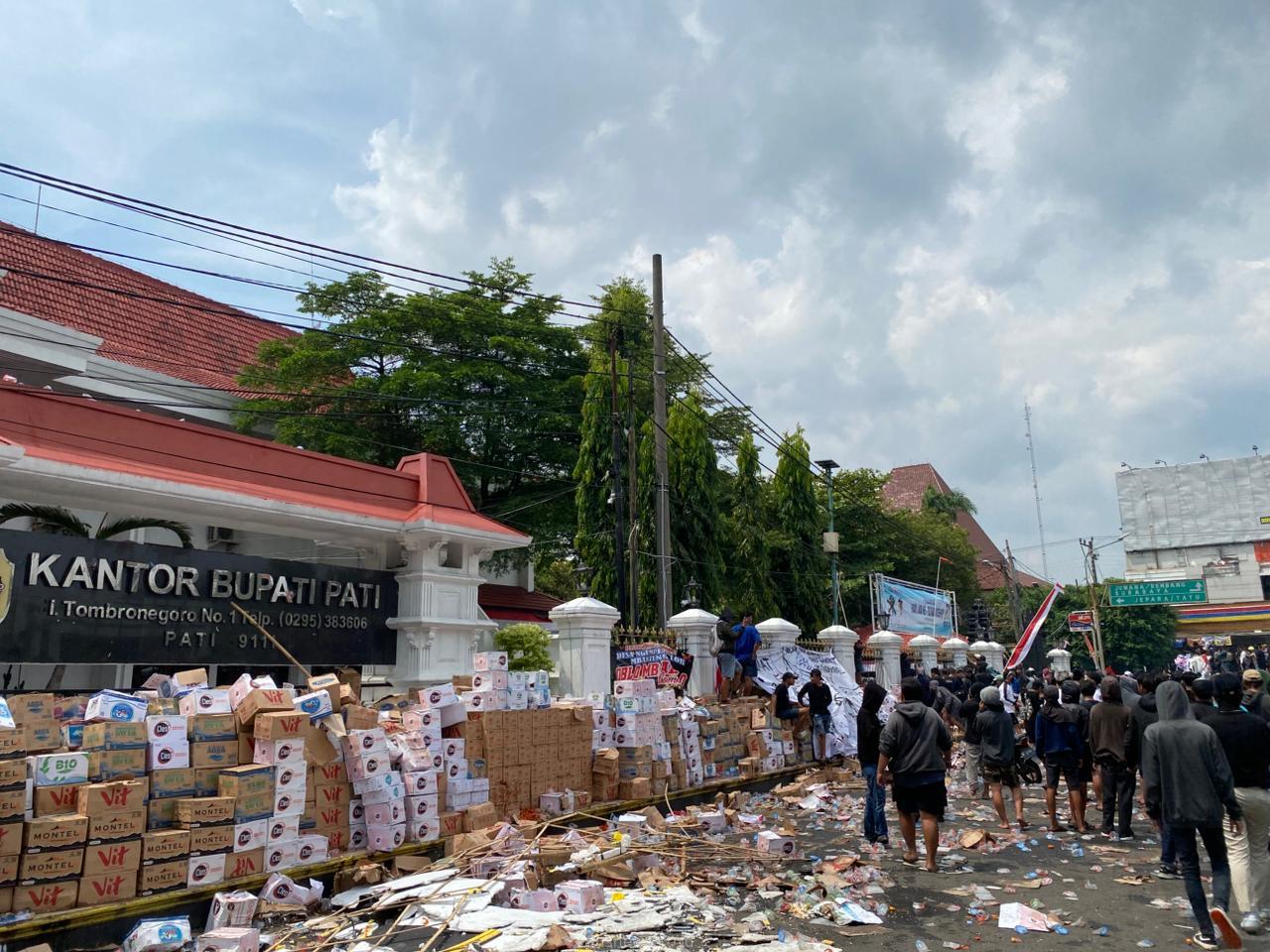 Namun, kemunculan orang nomor satu di Pati itu justru memicu amarah. Massa melempari Sudewo dengan botol air mineral, sandal, dan sepatu. Meski sempat menyampaikan permintaan maaf kepada masyarakat, pernyataan Sudewo tidak meredakan ketegangan. Massa tetap mendesak agar ia segera menandatangani pernyataan mundur dari jabatannya.