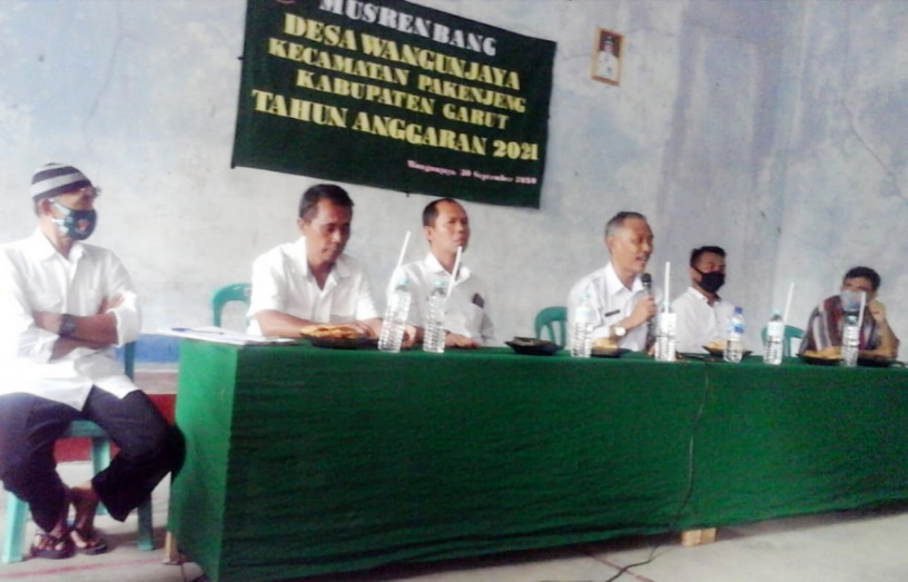 Garut,transnews.co.id- Musrenbang Desa Wangunjaya di Kecamatan Pakejeng Garut Jawa Barat yang berlangsung di Gor Desa Wangunjaya,Rabu (30/9/2020)kemarin memprioritaskan pemulihan ekonomi dan penguatan bidang Insprastuktur.