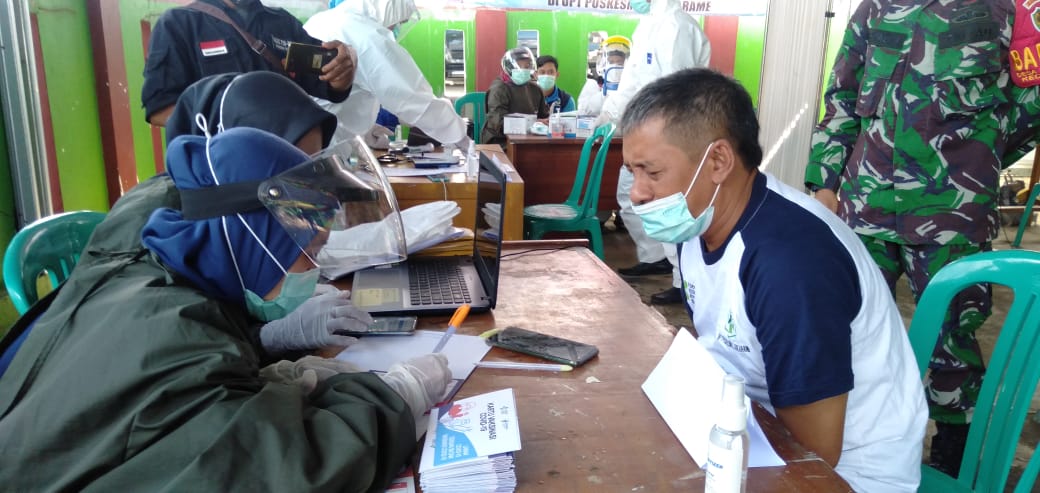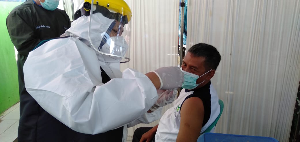 Tahapan pertama peserta vaksinasi masuk meja ke satu untuk pendaftaran ldentitas,lanjut ke meja ke dua menjalani Screening untuk menentukan layak dan tidak layaknya kita di Vaksinasi,”ujarnya.